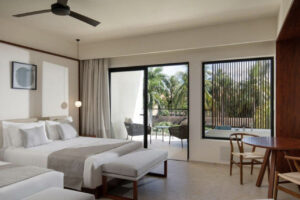 Share the luxury and beauty of this exquisite room that offers an incomparable exclusive pleasure within a natural environment. Admire the beauty of every corner of the resort. Feel your emotions multiply in this room that includes two double beds, experience true enjoyment with the 400 thread count sheets, Smart TV, living room, mini bar and capsule coffee maker for your delight. Pamper yourself with our Molton Brown amenities.